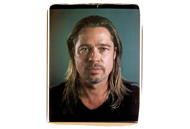 As I was turning the pages, I see a photo of Brad Pitt. His face is bare, the shot is head on, clearly not touched up, and the lighting is strangely not very flattering. That’s a surprising photo, I say to myself. I look up to see who the photographer is.