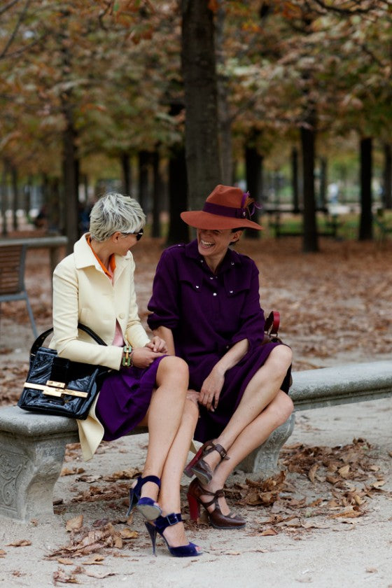I love the photo of those two women gossiping on a park bench! So cute!